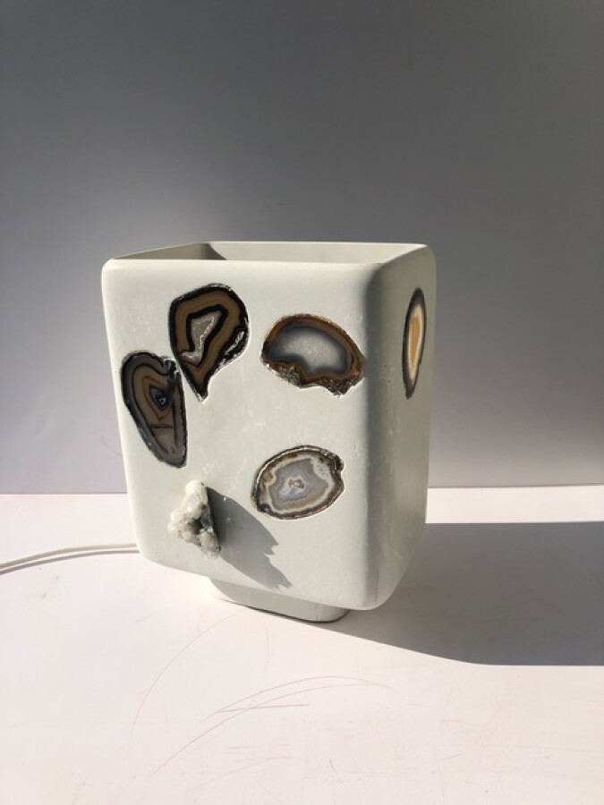 DUBUS Kalou "Jewel lamp" Lampe en béton inscrustée d'agates Haut. : 36 cm