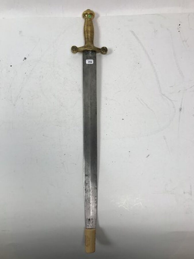 Glaive de cantinière ou de sapeur pompier, modèle 1855. Poignée en bronze. Garde à deux quillons droits, boulés. Lame droite à arrête médiane. B.E. S.F. Epoque Second Empire.